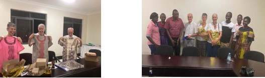 On our last evening we were taken back to the Galaxy Country Club for a meal with all the hospital dignitaries and presented with gifts. Myself and Teresa were given a beautiful Ugandan dress each and Angel a Ugandan top.