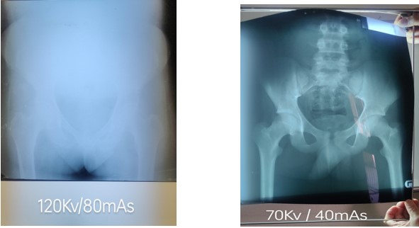 We noted some of the x-ray images were of poor diagnostic quality due to a number of factors: very old damaged cassettes, scratches from metal film holders and the inability to image Abdomen, pelvis or lumbar spine images on even the slightly larger patients.